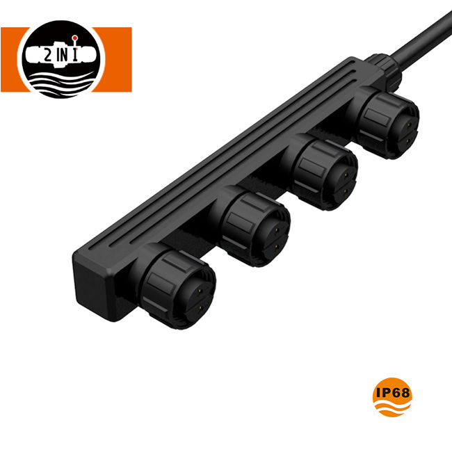 F Shape Multiply Output M19 Αδιάβροχο βύσμα 3 ακίδων μπορεί να ταιριάζει με το M19 3 pin connector, 1 in 2 out, 1 in 3 out, 1 in 4 out, 1 in 5 out διαθέσιμο. Ο σύνδεσμος 3 ακίδων σχήματος F M19 πληροί την αδιάβροχη βαθμολογία IP68, αδιάβροχο, ανθεκτικό στην υγρασία, ανθεκτικό στη βροχή, αντιηλιακό και αντιδιαβρωτικό, χρησιμοποιείται ευρέως για το φως του δρόμου LED.